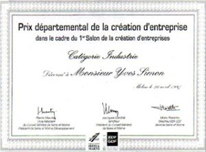 Il reçoit le prix départemental de la création d'entreprise dans la catégorie industrie, cette distinction sur la reconnaissance de ses capacités et de l'avenir de l'entreprise s'est révélée opportune.